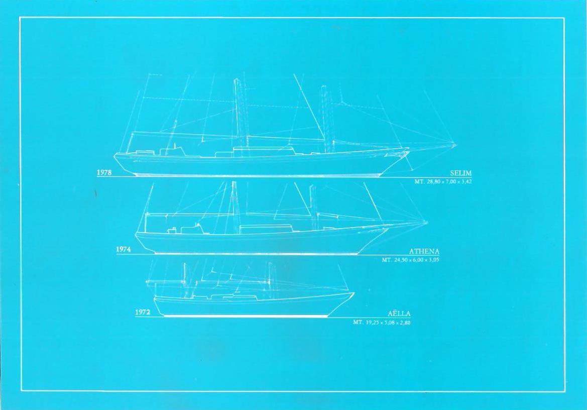 Milly has two larger sister ships, Athena (1974, Cantieri Valdettaro) and Selim (1978, Sangermani).